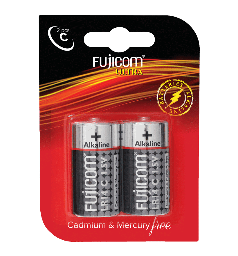 Two-pack alkaline battery C Cadmium & mercury free